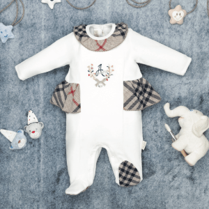2,750 DAAdorable grenouillère en coton doux pour bébé garçon, ornée d'un motif de bateau. Couleurs apaisantes, parfaites pour un style tendre et confortable.Grenouillère Blanche Amore 100% Cotton babydola