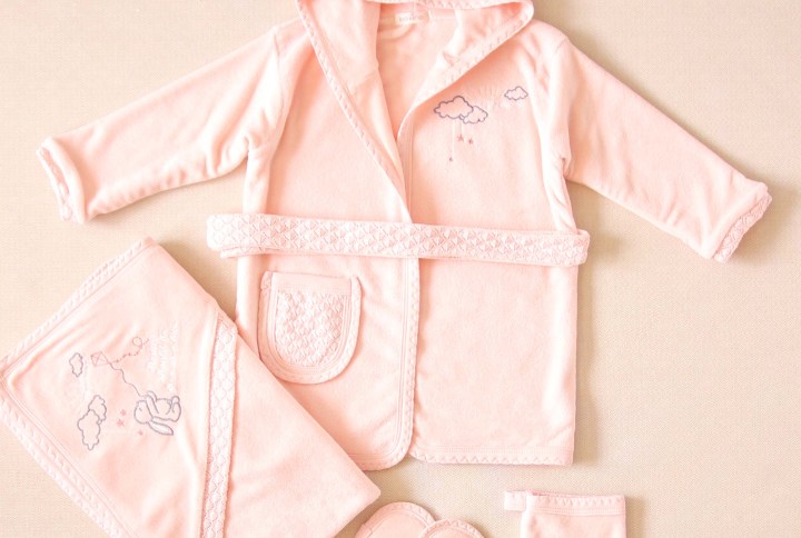 - Inclus dans la boîte : 1 cape de bain avec capuche, 1 serviette assortie, 1 paire de chaussons, et 1 gant de toilette.
