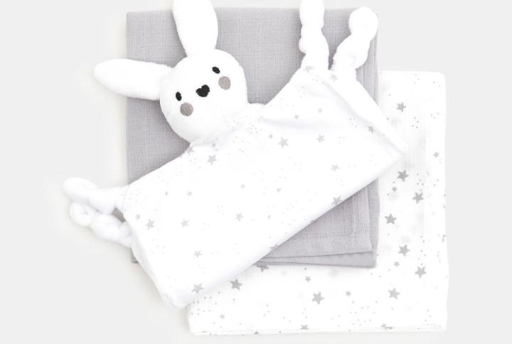 - Couverture en coton : Une couverture douce et délicate, parfaite pour emmailloter votre bébé ou pour les sorties en poussette.